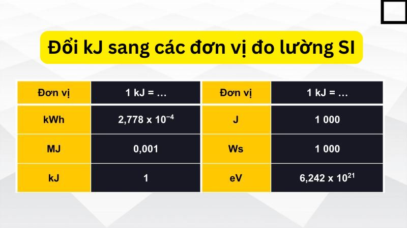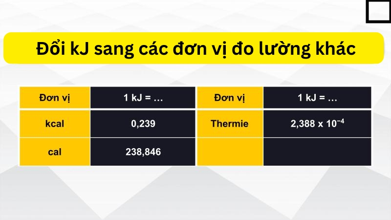 4. Đổi kJ sang các đơn vị đo lường khác