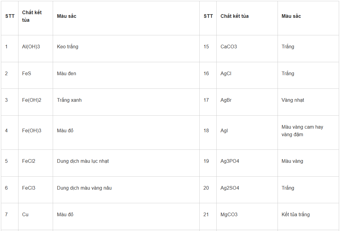1. Cách nhận biết các chất kết tủa qua màu sắc