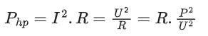 Công thức tính công suất hao phí
