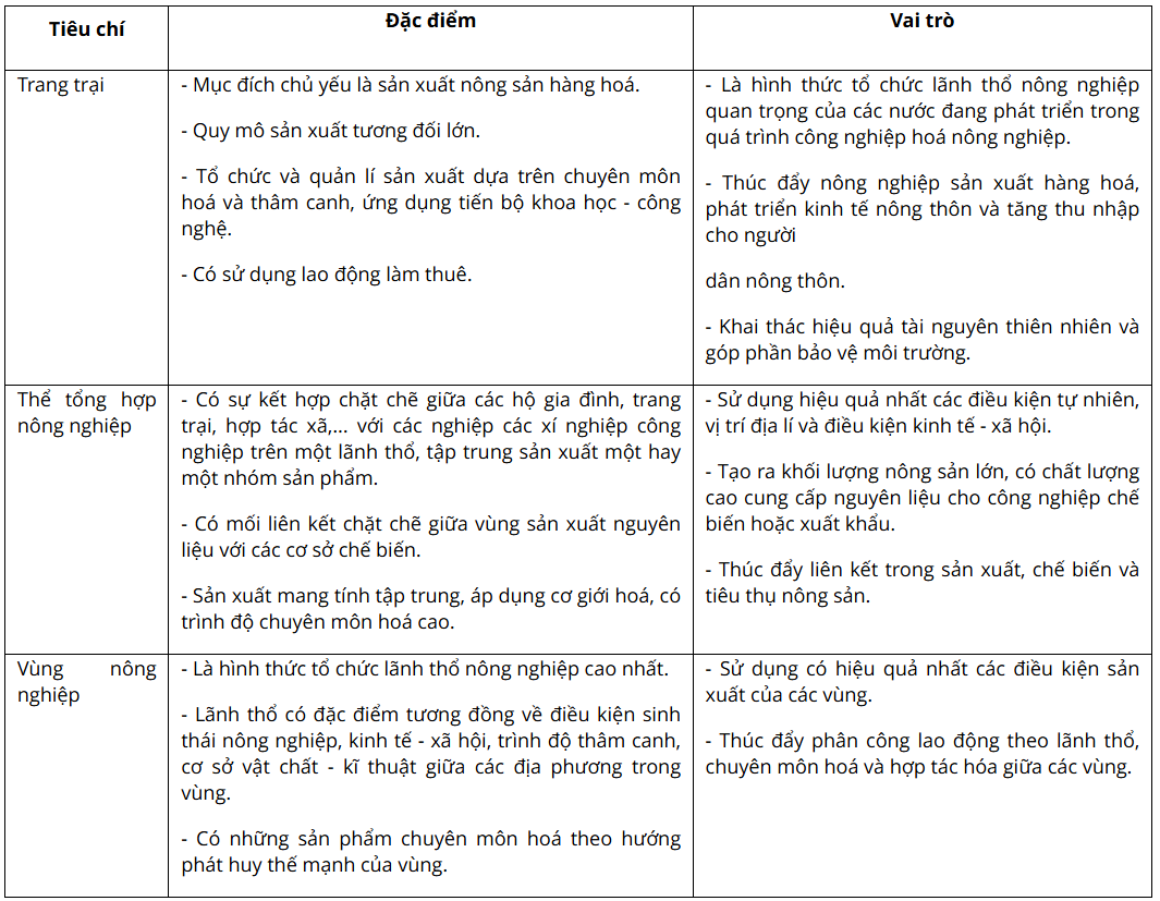 Câu 1: Trình bày vai trò, đặc điểm của một trong những hình thức tổ chức lãnh thổ nông nghiệp.