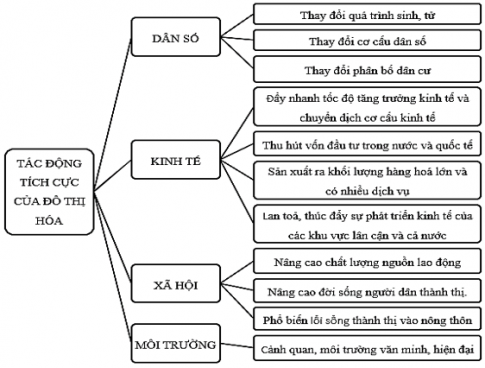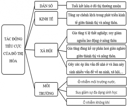 Luyện tập 2: Vẽ sơ đồ khái quát sự tác động tích cực và tiêu cực của đô thị hóa đến phát triển dân số, kinh tế, xã hội và môi trường ở các nước đang phát triển.