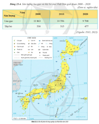 - Xác định sự phân bố một số nông sản của Nhật Bản trên bản đồ.