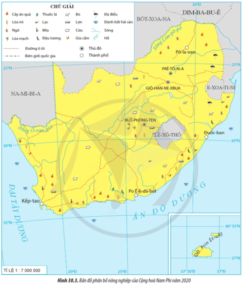 Câu hỏi 2 SGK Địa 11 Cánh diều Bài 30 (trang 148): Đọc thông tin, quan sát hình 30.3 và dựa vào bảng 30.3, hãy trình bày các điểm nổi bật của ngành nông nghiệp Cộng hòa Nam Phi.