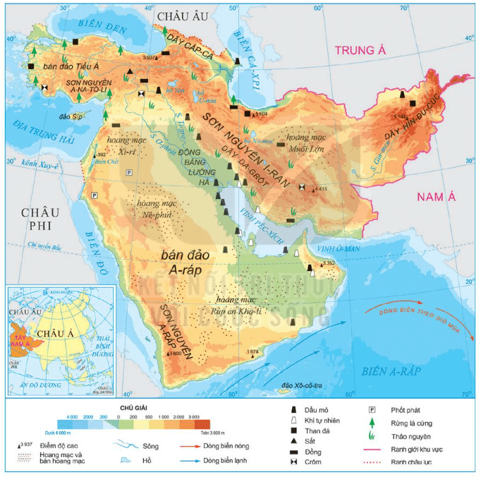 - Trình bày đặc điểm điều kiện tự nhiên và tài nguyên thiên nhiên của khu vực Tây Nam Á.