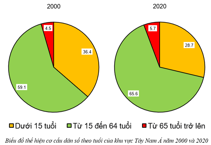- Biểu đồ thể hiện cơ cấu dân số theo tuổi của khu vực Tây Nam Á năm 2000 và 2020