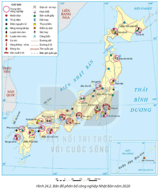 Câu hỏi: Dựa vào thông tin mục 2 và hình 24.2, hãy trình bày sự phát triển và phân bố ngành công nghiệp Nhật Bản.