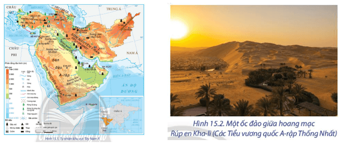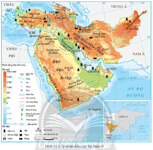 Câu hỏi mục II SGK Địa Lí 11 Chân trời sáng tạo Bài 15 (trang 75): Dựa vào hình 15.1, hình 15.2 và thông tin trong bài, hãy cho biết đặc điểm về tự nhiên và tài nguyên thiên nhiên của khu vực Tây Nam Á. Đặc điểm này có ảnh hưởng đến hoạt động kinh tế - xã hội như thế nào?