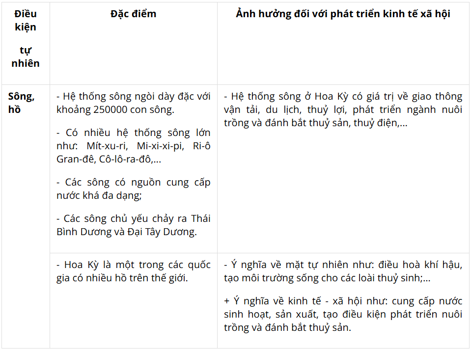 - Phân tích ảnh hưởng của đặc điểm tự nhiên và tài nguyên thiên nhiên đối với phát triển kinh tế - xã hội Hoa Kỳ.
