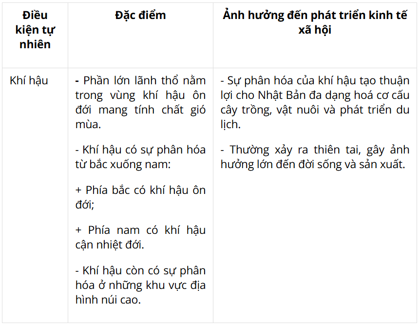 - Trình bày những đặc điểm nổi bật về điều kiện tự nhiên và tài nguyên thiên nhiên của Nhật Bản.