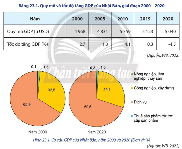 - Nhận xét về quy mô, tốc độ tăng và cơ cấu GDP của Nhật Bản, giai đoạn 2000-2020.