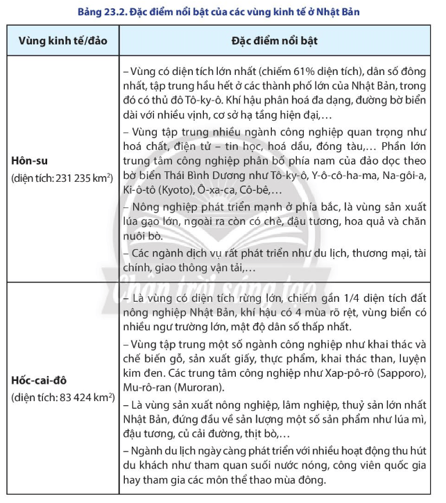Câu hỏi mục III SGK Địa Lí 11 Chân trời sáng tạo Bài 23 (trang 127): Dựa vào bảng 23.2, hãy nêu những đặc điểm nổi bật của các vùng kinh tế ở Nhật Bản.