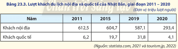 b) So sánh và nhận xét về sự thay đổi lượt khách du lịch nội địa và quốc tế của Nhật Bản, giai đoạn 2011-2020.