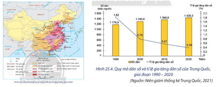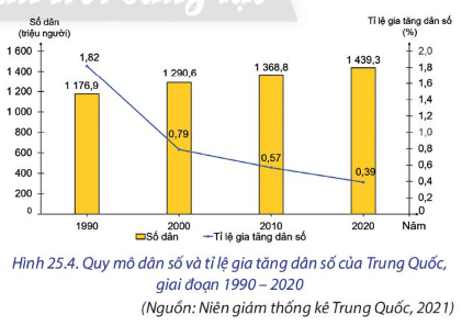 Luyện tập 2: Dựa vào hình 25.4, hãy nhận xét quy mô dân số và tỉ lệ gia tăng dân số của Trung Quốc, giai đoạn 1990-2000.
