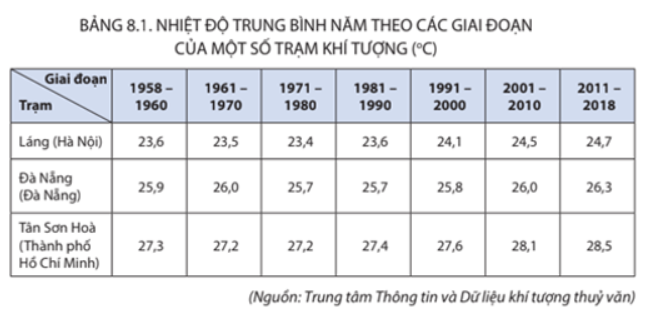 Câu hỏi: Đọc thông tin mục 1 và bảng 8.1, 8.2, hãy phân tích tác động của biến đổi khí hậu đối với khí hậu nước ta.