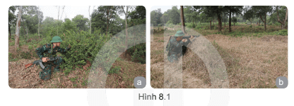 - Chiến sĩ trong hình 8.1 lợi dụng bụi cây, ụ đất để che dấu hành động.