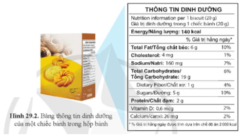 a) Thông tin về các loại chất dinh dưỡng có trong một chiếc bánh: