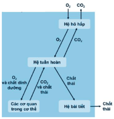 Bài tập 4: Vẽ sơ đồ thể hiện mối quan hệ giữa hệ tuần hoàn, hệ hô hấp và hệ bài tiết.