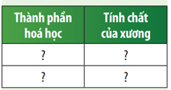 Câu hỏi 2: Xác định thành phần hóa học và tính chất của xương bằng cách hoàn thành bảng sau: