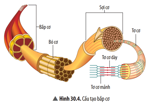 - Sơ đồ cấu trúc của bắp cơ theo thứ tự lớn dần: Tơ cơ → Sợi cơ → Bó cơ → Bắp cơ.