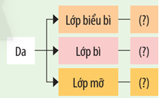 Câu hỏi 1 SGK Khoa học tự nhiên 8 Chân trời sáng tạo Bài 43 (trang 185): Xác định các thành phần cấu tạo của da theo sơ đồ gợi ý sau: