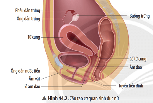 Câu hỏi 3 SGK Khoa học tự nhiên 8 Chân trời sáng tạo Bài 44 (trang 191): Quan sát Hình 44.2, cho biết cấu tạo cơ quan sinh dục nữ gồm những bộ phận nào. Xác định chức năng của các bộ phận đó bằng cách hoàn thành Bảng 44.2.
