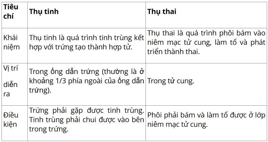 - Những điều kiện cần cho sự thụ thai: Hợp tử phải bám và làm tổ được ở lớp niêm mạc tử cung.