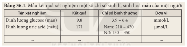 Hoạt động SGK Khoa học tự nhiên 8 Kết nối tri thức Bài 36 (trang 151): Đọc kết quả xét nghiệm nồng độ glucose và acid trong máu bảng 36.1