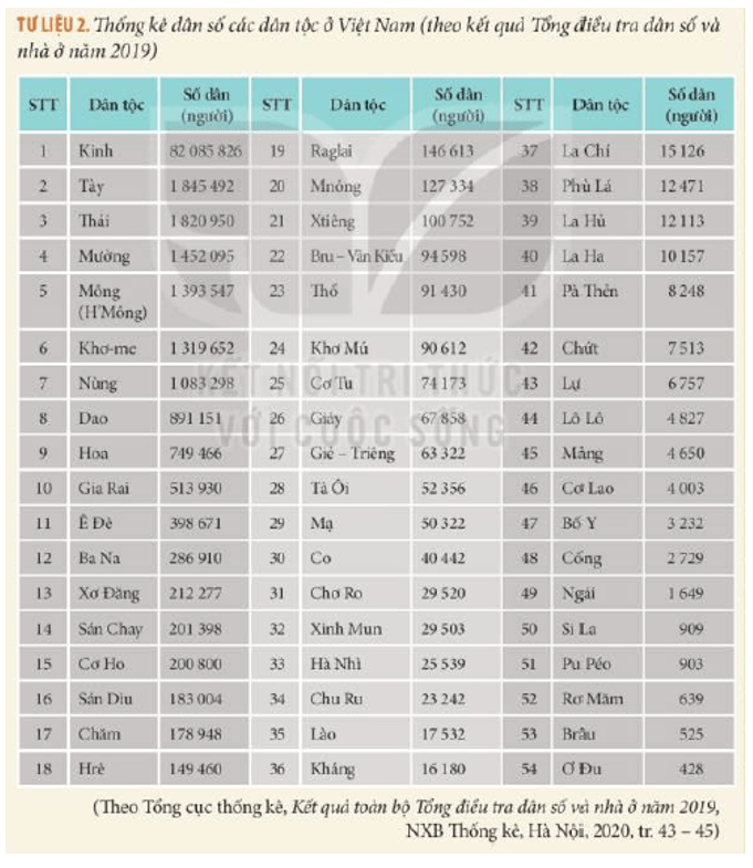 Câu hỏi 2 mục 1a SGK Lịch sử 10 Kết nối tri thức Bài 13 (trang 125): Khai thác thông tin trong Tư liệu 2 (tr.124), hãy kể tên một số dân tộc thuộc mỗi nhóm đó.