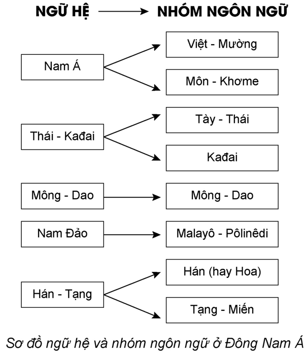 - Tên các ngữ hệ, nhóm ngôn ngữ đó: