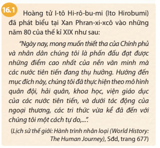 Câu hỏi 1 SGK Lịch sử 8 Chân trời sáng tạo Bài 16 (trang 66): Dựa vào tư liệu 16.1, em hãy cho biết mục đích của cuộc Duy tân Minh Trị là gì?