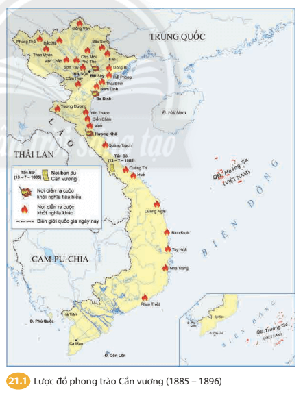 Mở đầu SGK Lịch sử 8 Chân trời sáng tạo Bài 21 (trang 85): Sau khi buộc triểu Nguyễn kí Hiệp ước Pa-tơ-nốt (1884), Pháp dù đã cơ bản đặt được ách thống trị trên toàn bộ Việt Nam nhưng quân Pháp còn phải mất thêm hơn 10 năm liên tục, hao quân, tốn của, dùng quân sự hòng đàn áp các cuộc phản kháng của nhân dân Liệt Nam. Vậy, phong trào yêu nước chống Pháp những năm cuối thế kỉ XIX diễn ra như thế nào? Có những cuộc khởi nghĩa tiêu biểu nào?