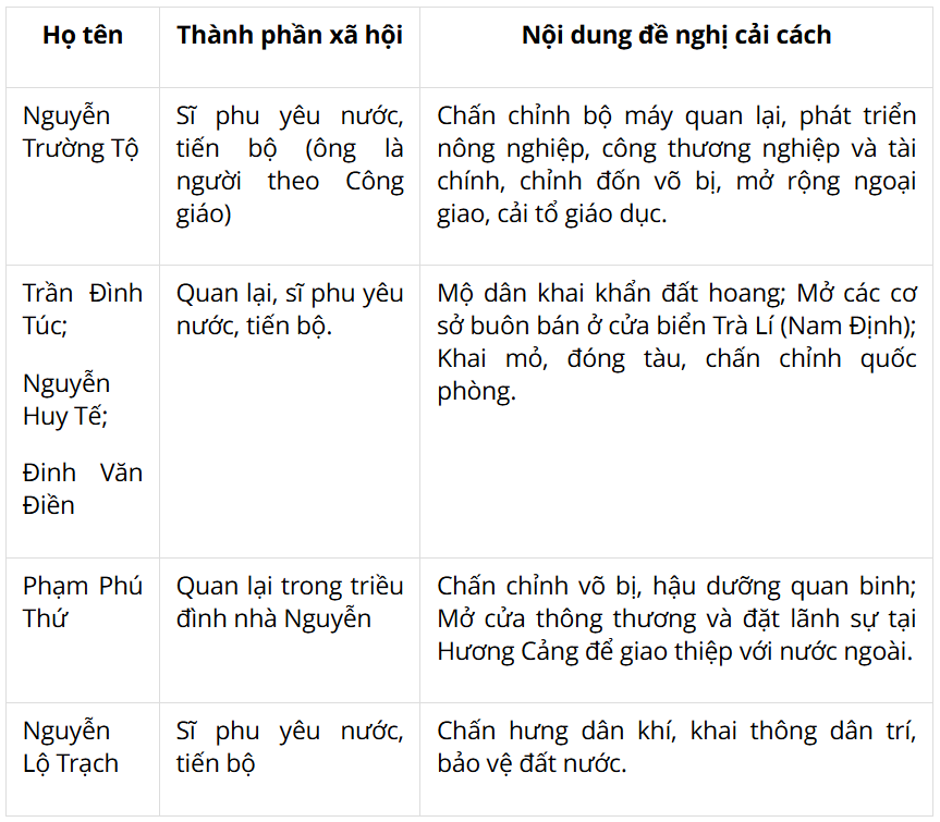 2. Những đề nghị cải cách ở Việt Nam vào nửa sau thế kỉ XIX