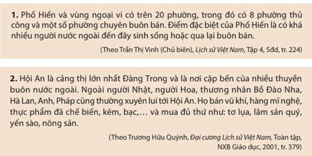 Câu hỏi: Khai thác tư liệu 1, 2 và thông tin trong mục, hãy nêu những nét chính về tình hình thương nghiệp của Đại Việt trong các thế kỉ XVI-XVIII.