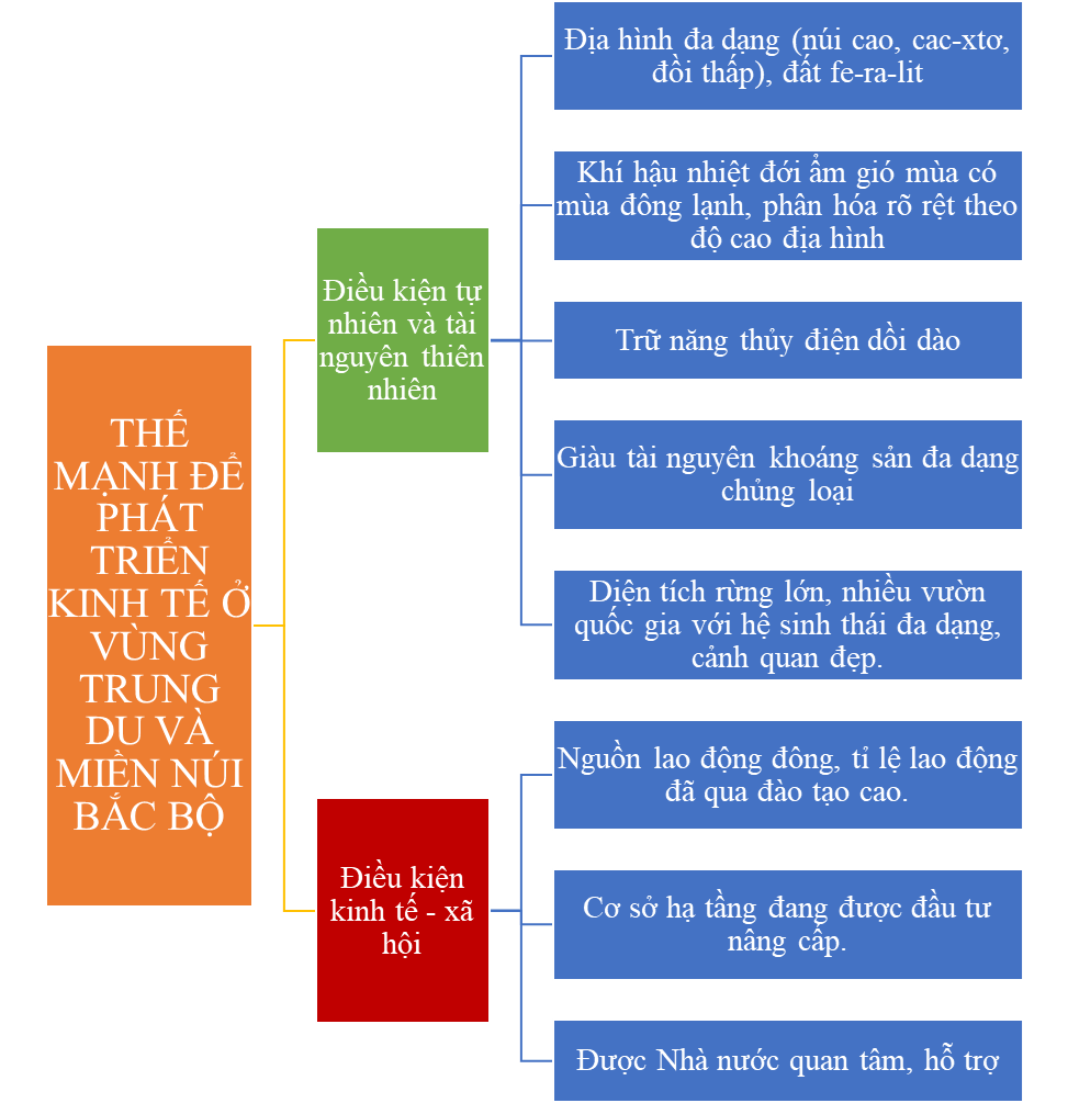 - Chứng minh thế mạnh về điều kiện kinh tế - xã hội của vùng Trung du và miền núi Bắc Bộ.