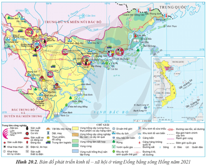 Câu hỏi: Dựa vào thông tin và hình 20.2, hãy phân tích vấn đề phát triển công nghiệp của vùng Đồng bằng sông Hồng.
