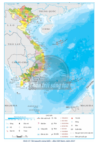 Câu hỏi: Dựa vào hình 37 và thông tin trong bài, hãy chứng minh vùng biển nước ta, các đảo và quần đảo có nguồn tài nguyên phong phú, đa dạng (gồm tài nguyên sinh vật, khoáng sản, du lịch và những loại tài nguyên khác).