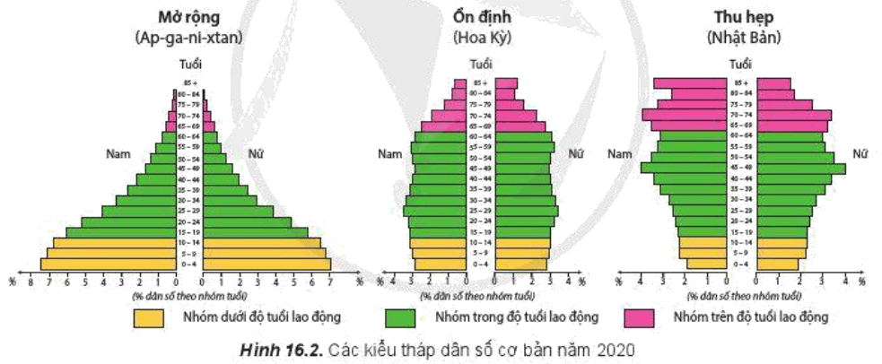 - So sánh hình dạng ba kiểu tháp dân số.