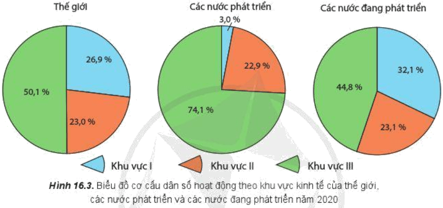 - So sánh tỉ lệ dân số hoạt động theo khu vực kinh tế của các nước phát triển và các nước đang phát triển.