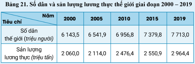BIỂU ĐỒ THỂ HIỆN SỐ DÂN VÀ SẢN LƯỢNG LƯƠNG THỰC CỦA THẾ GIỚI GIAI ĐOẠN 2000 - 2019