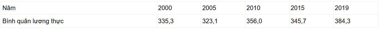 BÌNH QUÂN LƯƠNG THỰC ĐẦU NGƯỜI CỦA THẾ GIỚI, GIAI ĐOẠN 2000 - 2019
