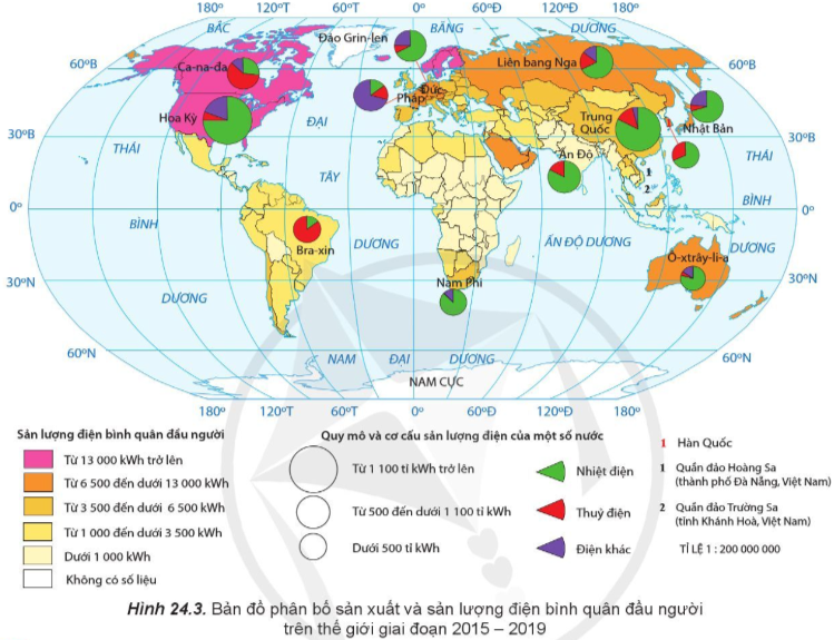 + Cơ cấu sản xuất điện năng ở các nước phụ thuộc vào nguồn sản xuất điện.
