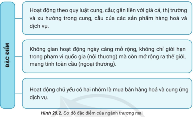 Câu 2: Quan sát hình 28.2, hãy trình bày và nêu ví dụ cụ thể về một trong ba đặc điểm của thương mại.