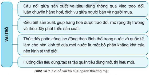 Câu 1: Đọc thông tin và quan sát hình 28.1, hãy nêu ví dụ cụ thể về vai trò của ngành thương mại.
