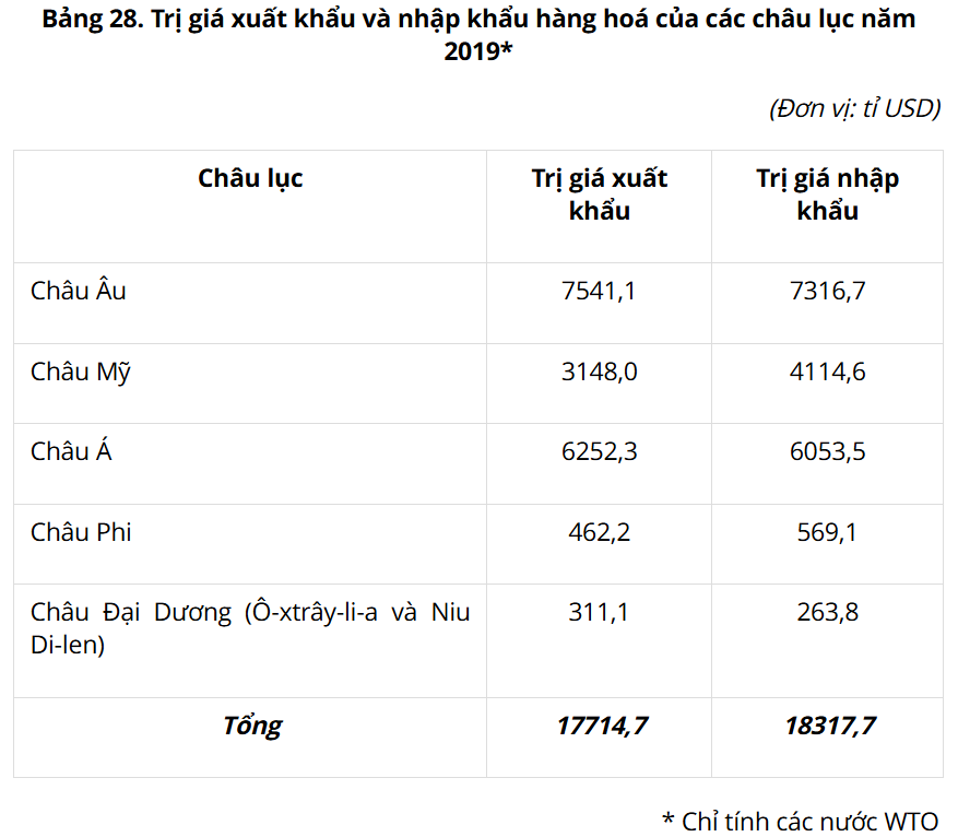 + Các khu vực có đóng góp lớn vào hoạt động xuất nhập khẩu hàng hoá là Tây Âu, Bắc Mỹ, Đông Á....