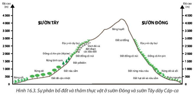 * Sự phân bố đất và thảm thực vật ở sườn Đông và sườn Tây dãy Cáp-ca