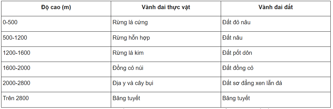 - Nhận xét sự thay đổi của đất và thảm thực vật theo độ cao.
