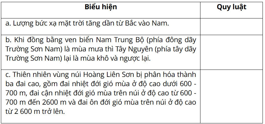 Luyện tập 2: Dựa vào kiến thức đã học, em hãy cho biết đây là biểu hiện của quy luật nào trong lớp vỏ địa lí ở nước ta.
