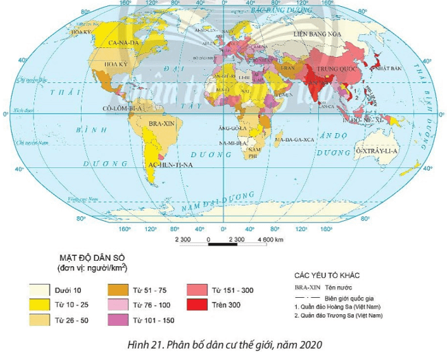 Câu hỏi mục 1 SGK Địa Lí 10 Chân trời sáng tạo Bài 21 (trang 84): Dựa vào hình 21 và thông tin trong bài, em hãy nhận xét tình hình phân bố dân cư trên thế giới.
