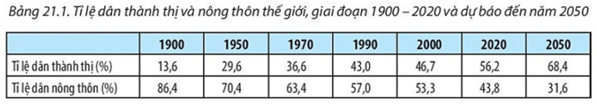 Câu hỏi mục 1 SGK Địa Lí 10 Chân trời sáng tạo Bài 21 (trang 85): Dựa vào bảng 21.1, thông tin trong bài và hiểu biết của bản thân, em hãy trình bày khái niệm đô thị hóa.