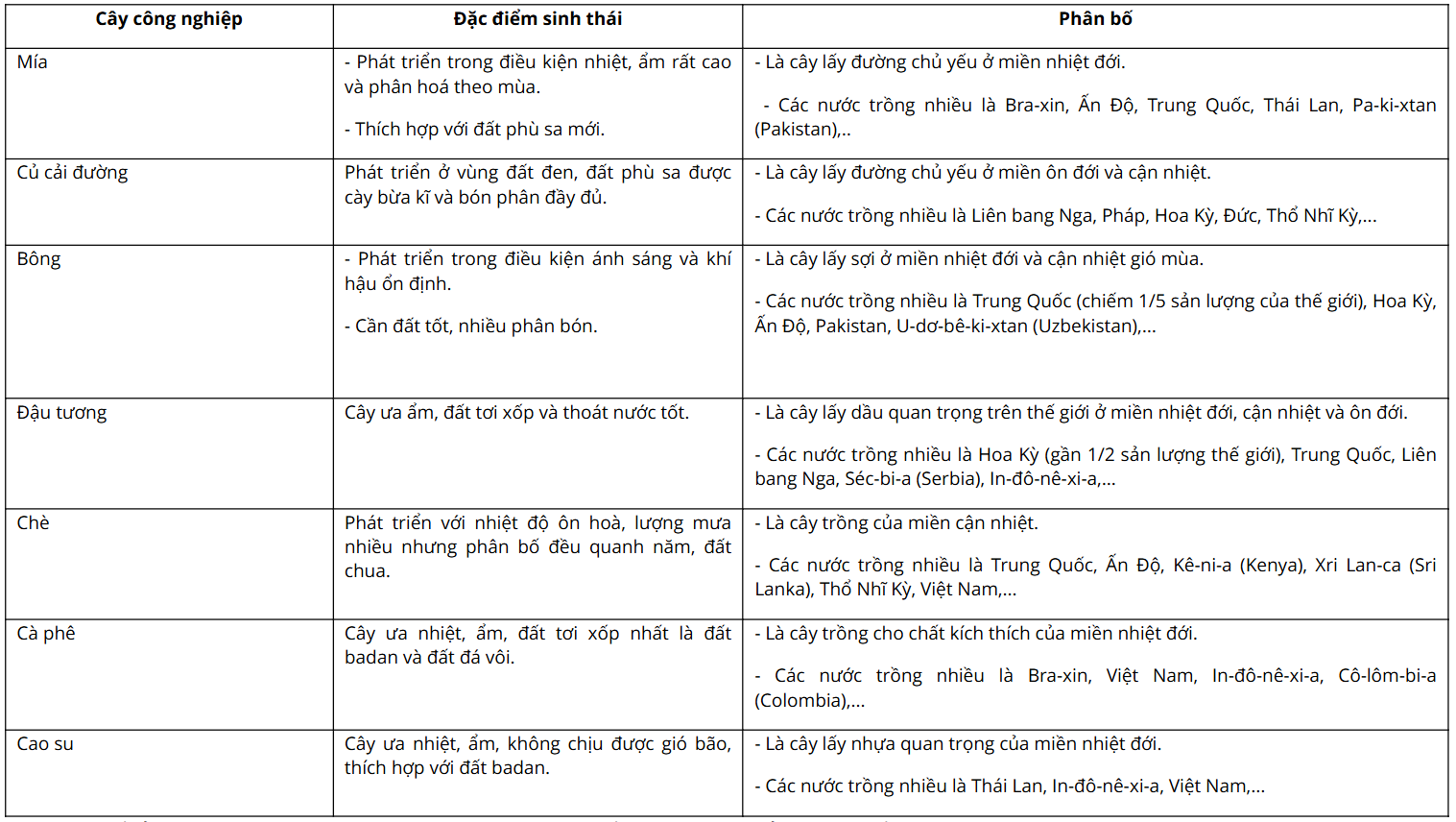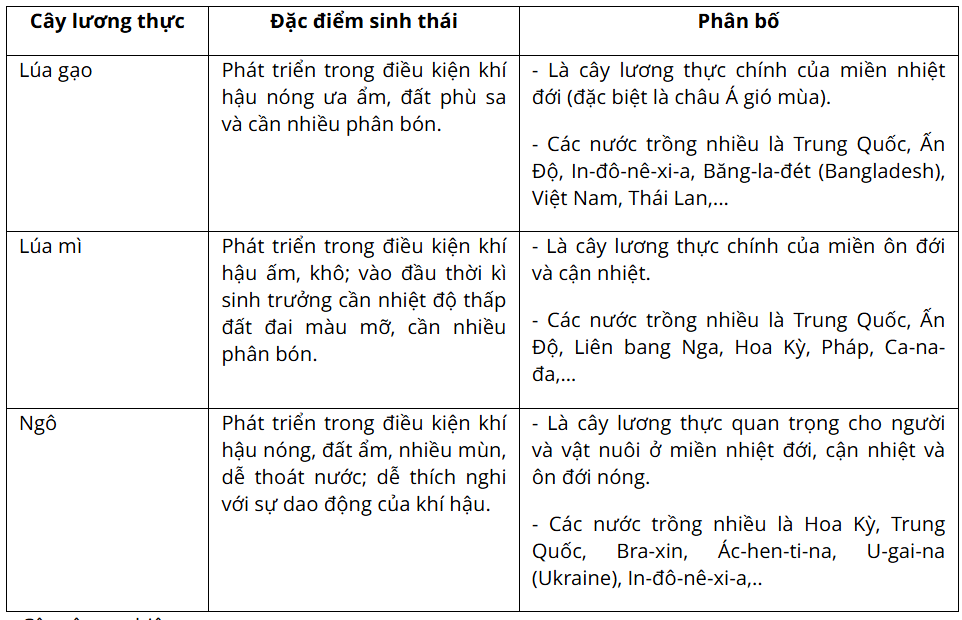 ⇒ Sự phân bố của các cây lương thực và cây công nghiệp phù hợp với điều kiện sinh thái của từng cây trồng.